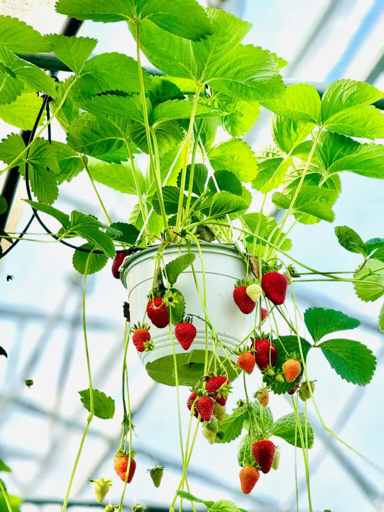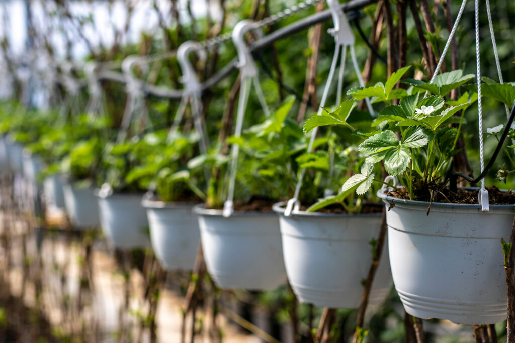 Mietimme muutamia vuosia sitten että olisipa kiva viljellä mansikkaa myös amppeleissa. Niin että jokaisella olisi mahdollisuus saada kotiin myös ihan omia mansikoita, sijainnista riippumatta.